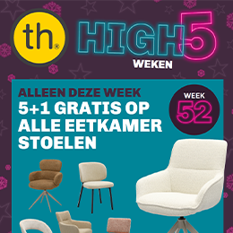 Tijdens de High5-weken van Trendhopper koop je vijf eetkamerstoelen en ontvang je de zesde helemaal gratis! Mix & match jouw favorieten en creëer een stijlvolle, comfortabele eetruimte.